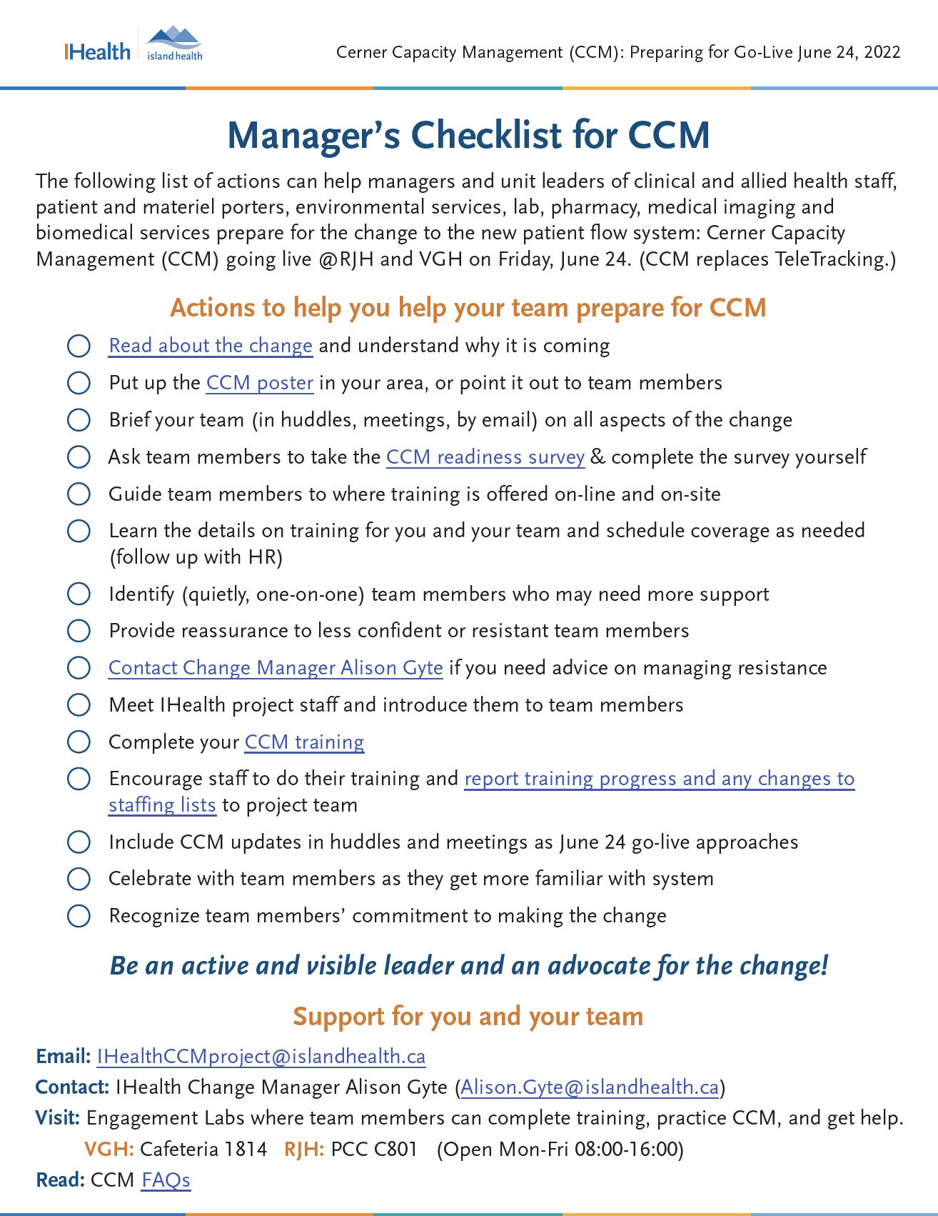 For questions about change management and assisting your team with this change, please contact IHealth Change Manager Alison Gyte atalison.gyte@islandhealth.ca